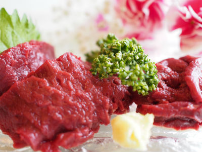 日本で馬刺しが有名と言えば伊那谷の他に熊本があります。熊本の馬刺しは、特に「サシ」の入った霜降りとして有名です。「サシ」というのは、肉の赤味に網目状に入った脂肪のことで、「サシ」の多く入った肉が霜降りと呼ばれます。馬自体が脂肪の付きにくい動物であるので、霜降りは確かに手に入りにくく、一般的にも珍重され、高価ではあります。ただ赤味と霜降り、どちらが美味いかは好みが別れるところです。言えることは貴重な霜降りは食文化とは成り難く、伊那谷の馬刺しこそが「さくら肉」と呼ばれ食文化として定着したと思うのです。